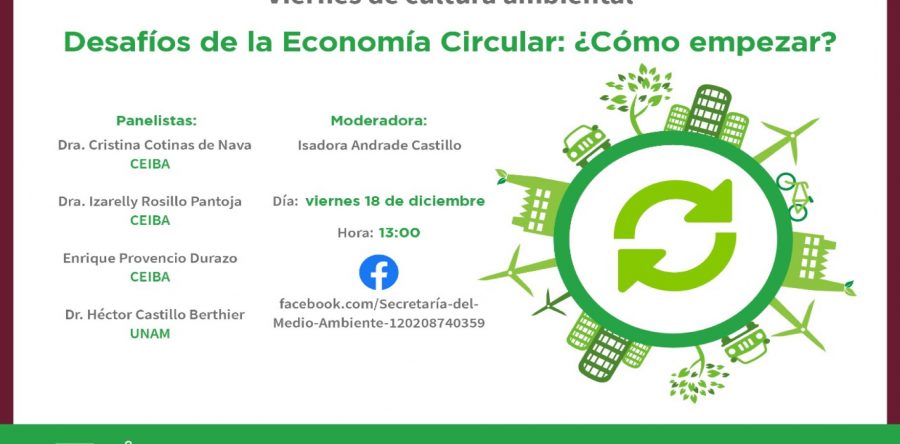 Participantes y tema a tratar (por orden de participación): Enrique Provencio.-"Pasos para un gran impulso ambiental" 2. Izarelly Rosillo.- La EC en el marco del Derecho a la Ciudad y la protección de los derechos humanos. Cristina Cortinas.-"Cómo medir que se avanza hacia la circularidad " Héctor Berthier.- "Basura y Política: ¿Cuál es su relación?" Mateo Castillo.- Economia circular como…